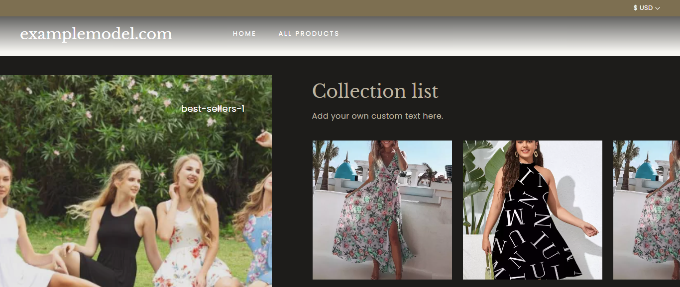 Examplemodel located at Examplemodel.com is an online store that claims to sell Amazon Pallets for only $34.97. It is also selling various types of clothings such as dresses, sandals, etc. And these products are sold at a suspicious discount rate.