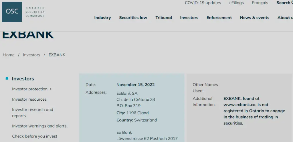 First of, Exbank.ca has no financial authority overseeing its financial services. As far as we’re concerned, this is the one of the most ambiguous yet common remarks made by scammer entities, helping them become as vague as possible but yet retaining the illusion of being legit.