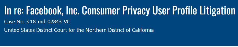 A Settlement has been reached between Defendant Facebook, Inc., now known as Meta Platforms, Inc., (“Meta” or “Defendant”) and Plaintiffs in a class action lawsuit pending in the United States District Court for the Northern District of California. The lawsuit is known as In re: Facebook, Inc. Consumer Privacy User Profile Litigation, Case No. 3:18-md-02843-VC (N.D. Cal.). Defendant denies that it violated any law