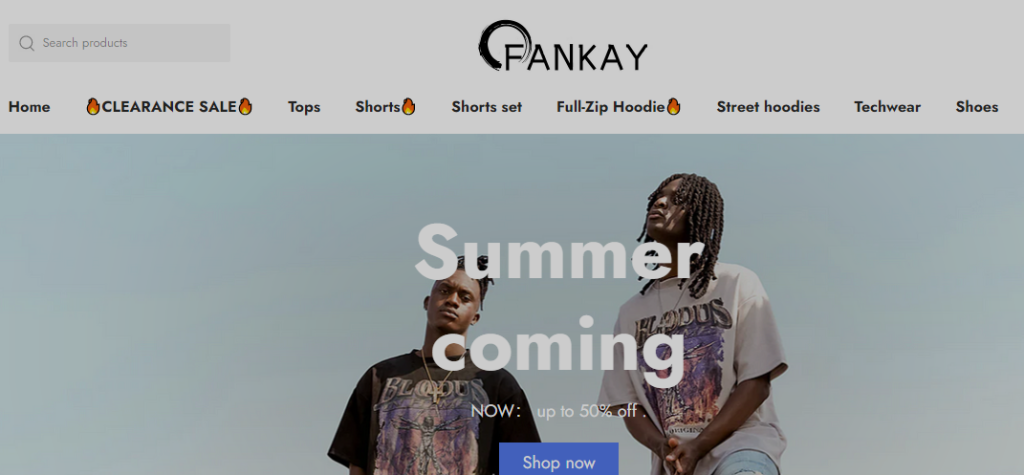 Fankay also called Fankay.com or Fankay is an online shop dealing on different clothing for men such as tops, shorts, full zip hoodie and much more. The store offers items at affordable prices and free shipping on order over $29.