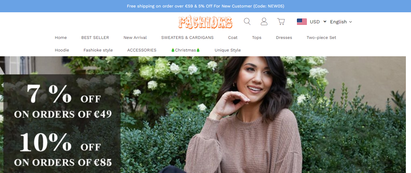 Fashioke located at Fashioke.com is an online store that is selling various fashion and clothing products like coats, tops, dresses, accessories, hoodies, two piece sets, sweaters, cardigans, etc. And these items are being sold at suspicious discount rates.