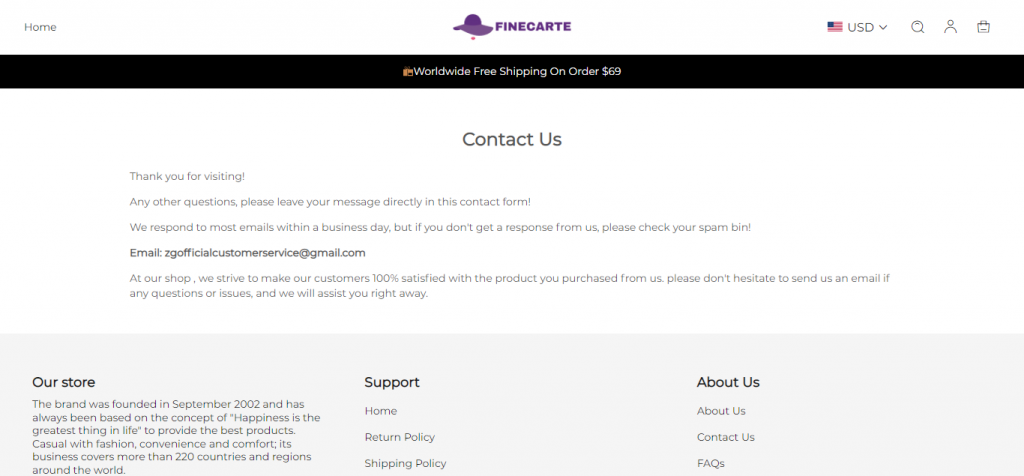 Finecarte.com has hidden its contact address on its website. It is suspicious and shows that Finecarte.com is hiding its information from its buyers. It is also suspicious as genuine stores always provide accurate information on its site. This is a red flag and an indicator that it is a scam store.