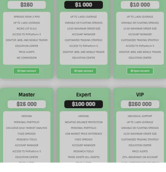 FinvizPro offers demo and live trading account for clients. The broker provides a leverage capped 1:400.