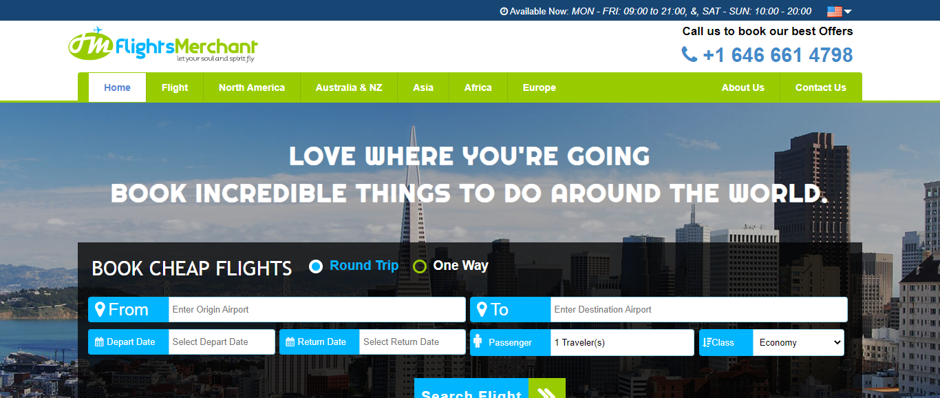 Flightsmerchant Claims to be a US based travel Agency that deals affordable flight reservations. They claim to share a contract with over 400 Airlines that helps in offering the best airfares.