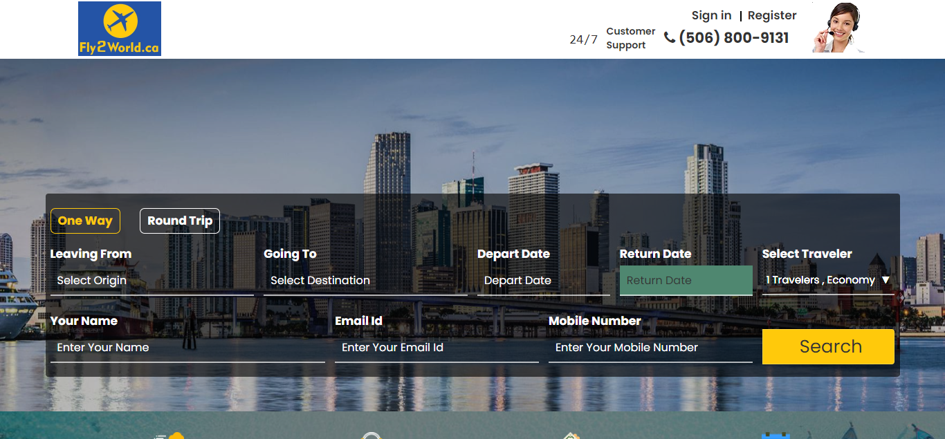 Fly2world Claims to be global online travel company, headquartered in Canada. The company operates an an Online Travel Agency (OTA) offering flights from Canada & US to South East Asia and the Middle East at Highly Negotiated Special Pricing also to Travel Agents.