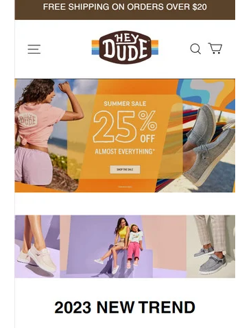 Footwearuzone located at Footwearuzone.com is an online store that is impersonating the HeyDude brand. It claims to be selling various HeyDude Shoes, etc. And these products are sold at a suspicious discount rate.