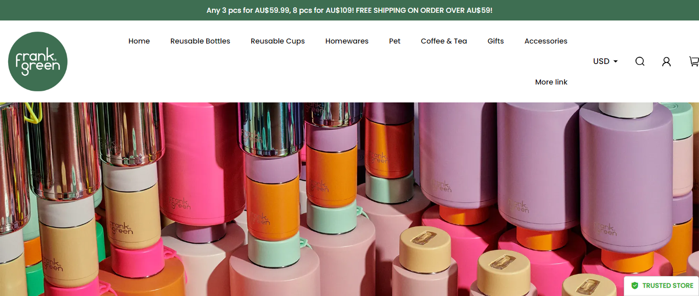 Frankbottles located at Frankbottles.shop is an online store that is impersonating the Frank Green brand. It claims to be selling various frank Green water bottle, etc. And these products are sold at a suspicious discount rate.
