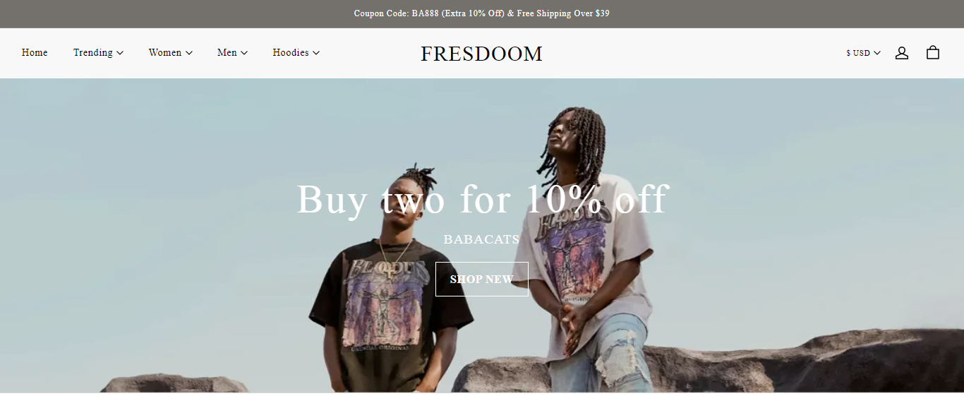 Fresdoom located at Fresdoom.com is an online store that is selling various products such as T shirt, casual shorts, cotton shirt, Hoodies, pants, etc. And these products are sold at a suspicious discount rate.