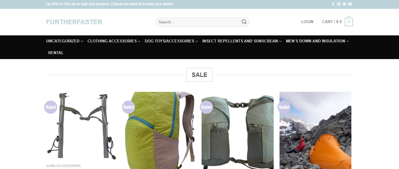 Furtherfaster located at Furtherfaster.shop is an online store that is claiming to be offering a clearance sale selling various products such as gear racks packs, compact aarn packs, reusable silicon pouch, etc. And these products are sold at a suspicious discount rate.