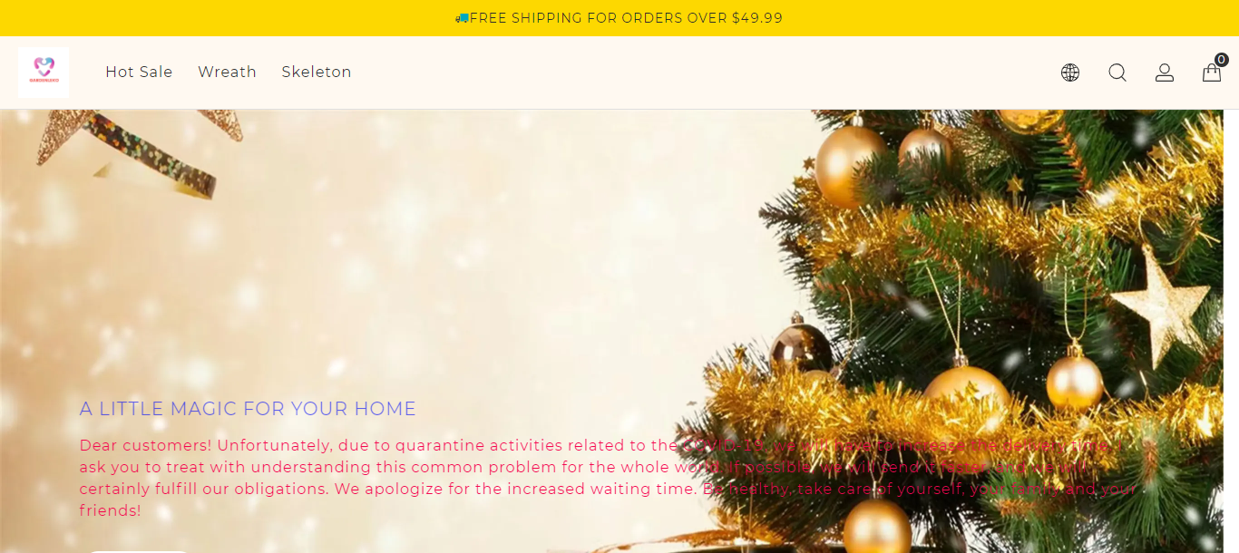 Gardenleko located at gardenleko.com is an online store that is selling various products such as Shark Night Light🎏-Rustic Style Fish Statue Lightning, Bohemian Sunset Prism Lamp, Merry Christmas Lighted Burlap Bag Christmas Decorations, Handmade Jelly fish LED Lantern, Christmas Porch Light, Titanic Cherub Lamp, etc. And these products are being sold at suspicious discount prices. It is also offering Free shipping for orders over $49.99.