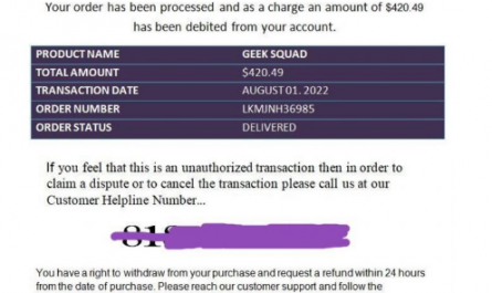 A Geek Squad Scam Email always comes in this form: