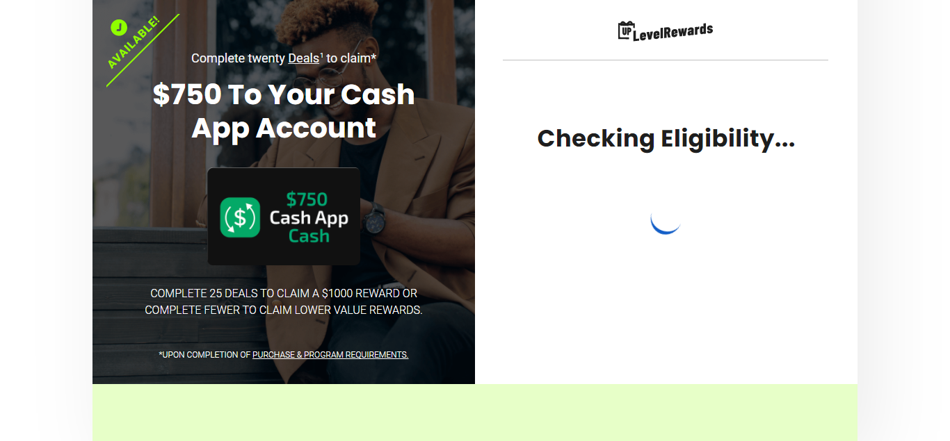 On the official website users are asked to complete twenty deals in order to claim $750 to their cashapp account or complete 25 deals to claim $1000. According to the website, You can typically complete all of the required sponsored Deals within 5-7 days (some may take up to 60 days to complete). Once you complete the required number of Deals, you must complete the Reward claims process, which requires ID verification. It typically takes our customer service team 5-7 days to verify and deliver your Reward.