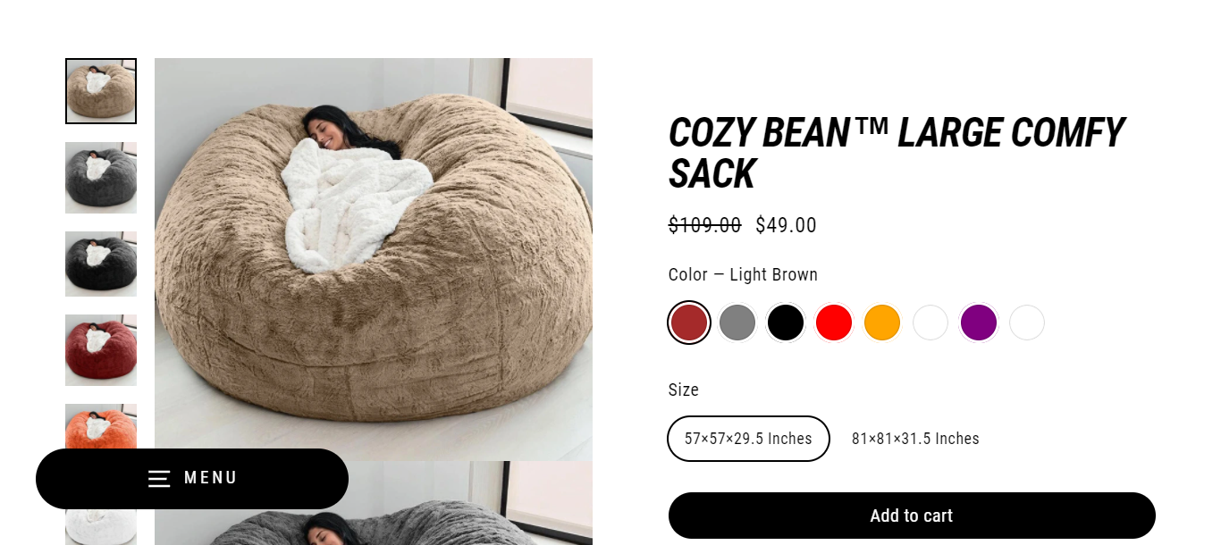 Getcozybean located at getcozybean.com is an online store that sells Cozy bean large comfy sacks. And these products are being sold at suspicious discount prices.