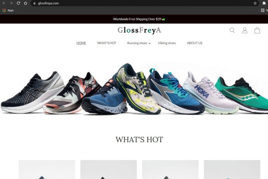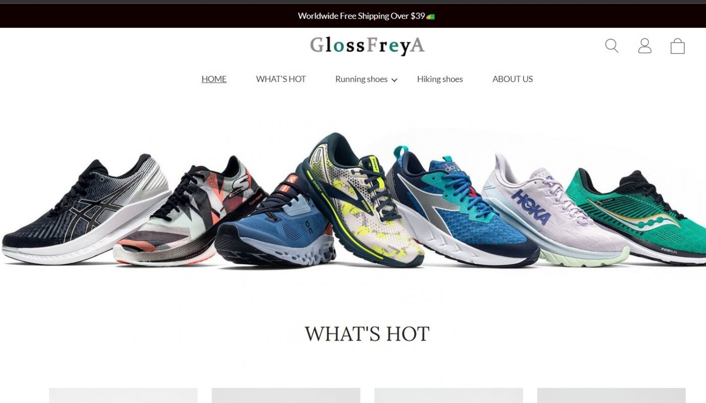 Glossfreya.com is an online store that claims to sell Hoka sneakers and running shoes. The website is not properly structured and it misses some key elements of a professional online store. This site is less than three months old (You can check their age on WHOIS Domain Age Checker), which gives it a low trust score in that respect.