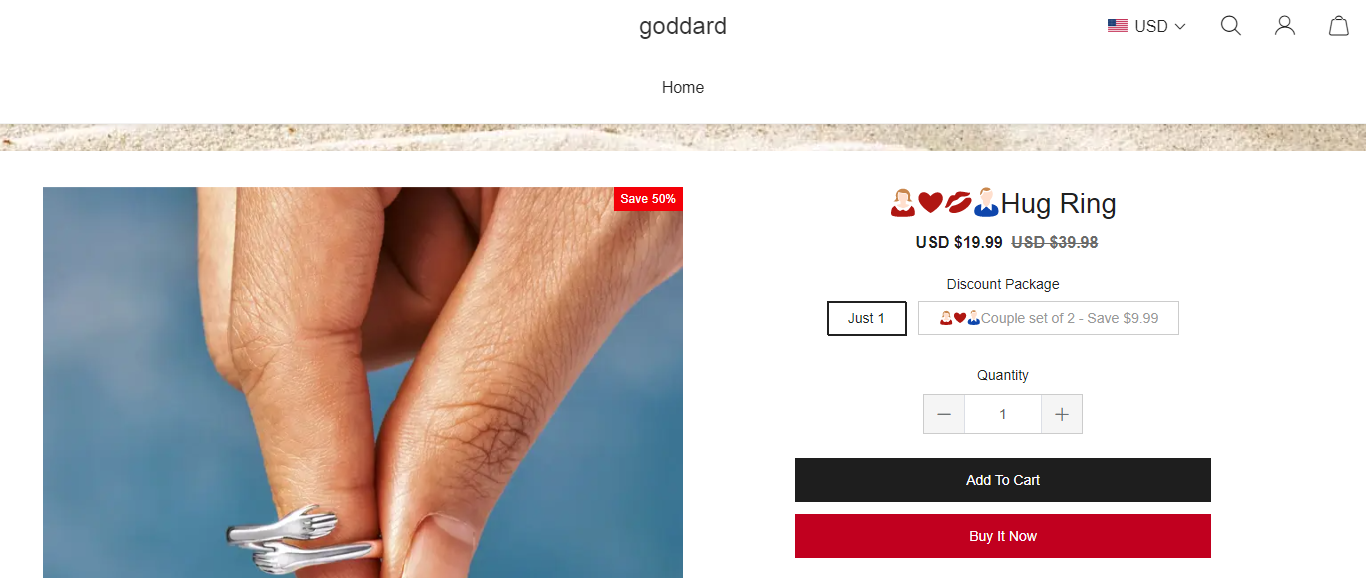 Goddard located at Goddard.store is an online store that is selling various products such as a Hug ring, Mothers day necklace, Mascara, etc And these products are sold at a suspicious discount rate.