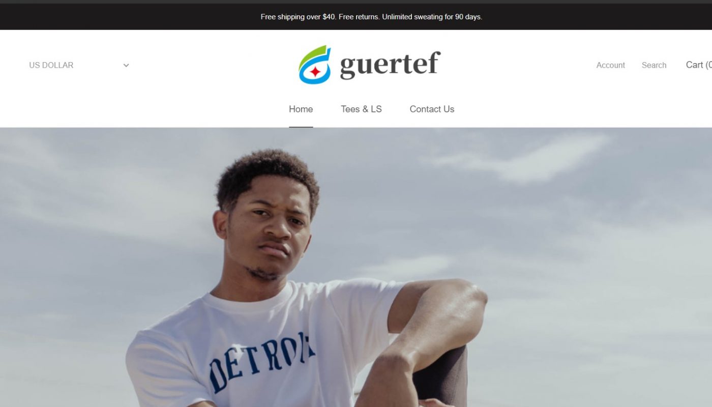 Guertef.com is an online store that claims to sell different kinds of T-shirts. The website is not structured very well and it misses some elements of a professional online store. It is less than a month old and as such, has a low trust score (You can check this using WHOIS Domain Age Checker).