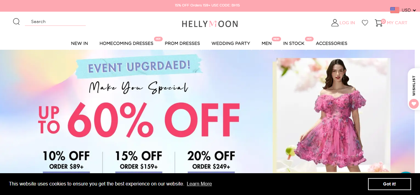 Hellymoon located at Hellymoon.com is an online store that is selling various clothing and dress such as bridesmaid dress, home coming dress, prom dress, etc. And these products are sold at a suspicious discount rate.