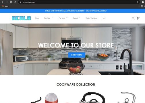 Henlastore.com is an online store that claims to sell kitchen utensils. The website is not structured very well and it misses some elements of a professional online store. This site is also less than a month old (You can check this using WHOIS Domain Age Checker), which gives it a low trust score. Buying things from relatively new websites like that rarely ends well.