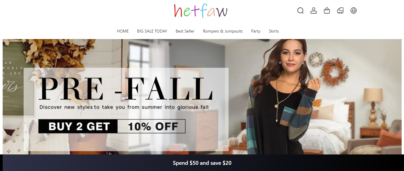 Hetfaw located at Hetfaw.com is an online store that is selling various products such as jumpsuits, rompers, pants, jumpsuits, etc. And these products are sold at a suspicious discount rate.