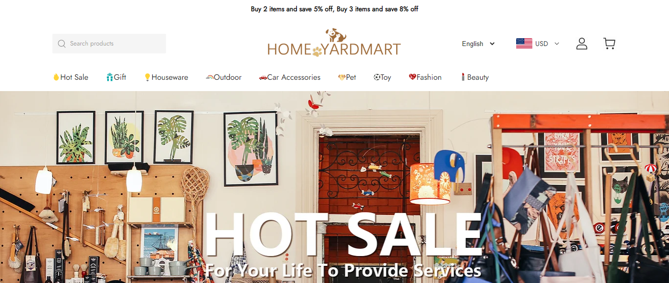 Homeyardmart.com has stolen most of its contents, product images from various online stores.