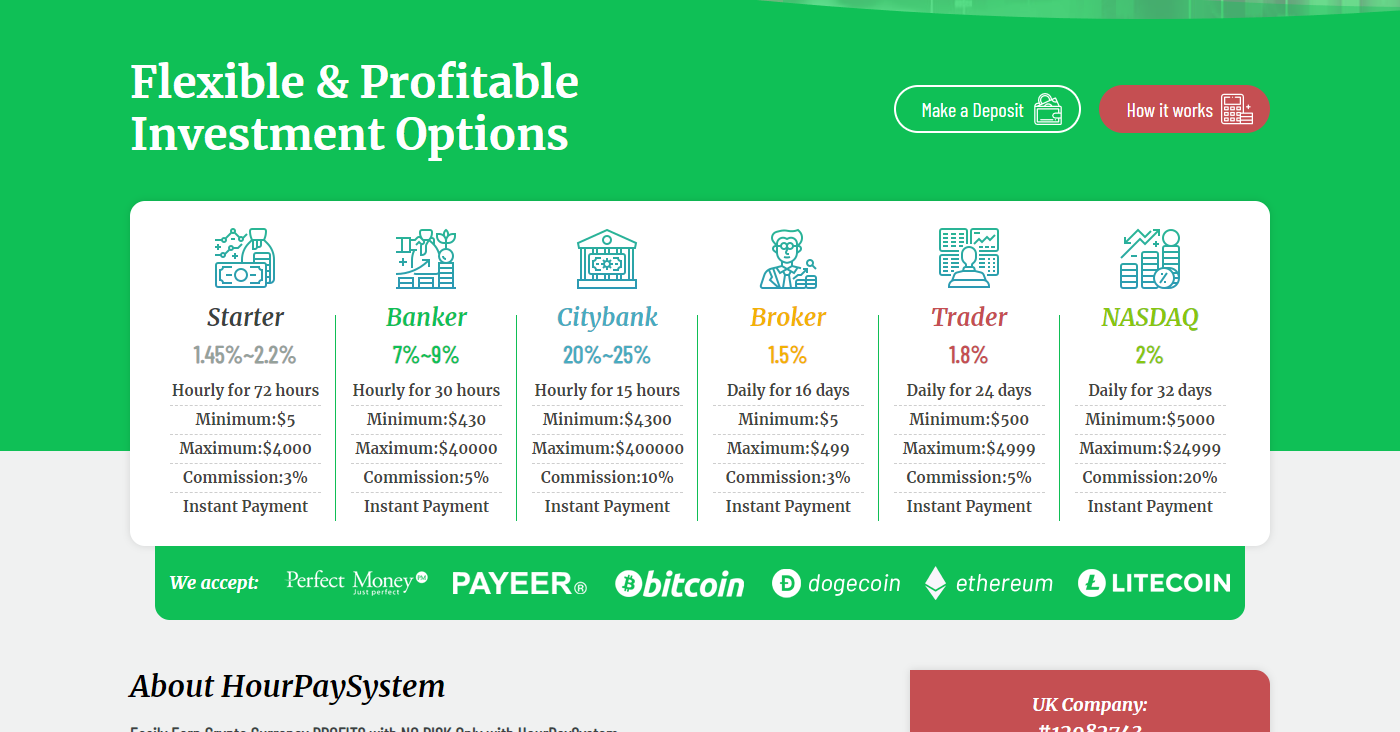 Looking for Hourpaysystem.com reviews? Search no more. This review provides enough information about Hourpaysystem Investment platform. Due to the rise in online scams, we provide genuine reviews that help you decide if an investment platform is scam or legit. Do not invest in any platform without checking its authenticity.