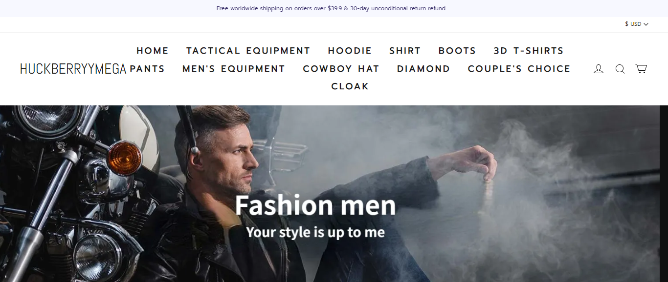 Huckberryymega located at Huckberryymega.com is an online store that is selling various products such as short sleeve shirt, hoodies, jacket, etc And these products are sold at a suspicious discount rate.