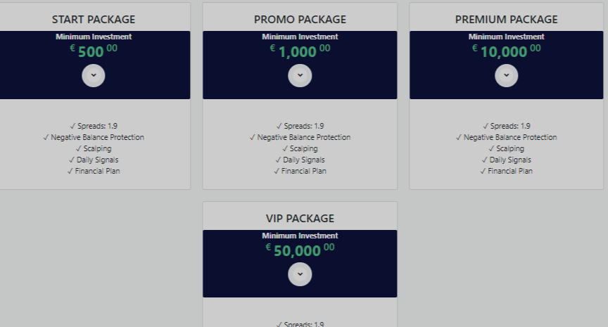 The broker offers different account packages such as