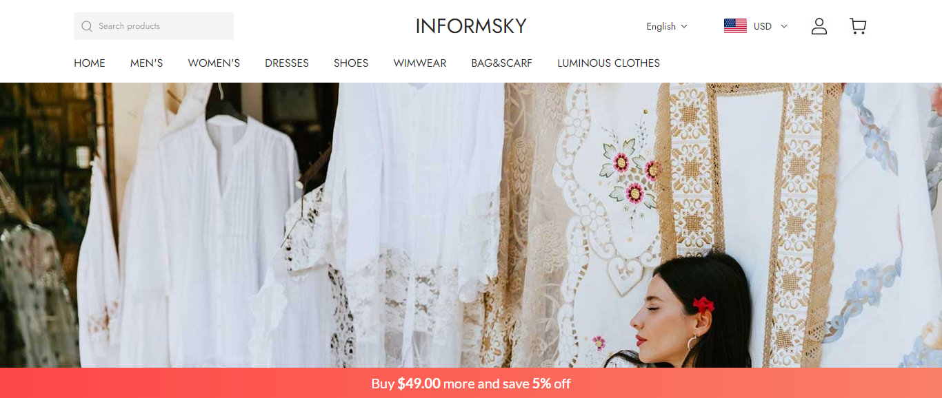 Informsky located at Informsky.com is an online store selling various Male and female fashion and clothing such as kimono dresses, tunics, platform boots, roller skates, heels, wedges, men’s tshirts, shorts, loafers, jackets and vests, cloaks, etc. And these items are being sold at suspicious discount rates.