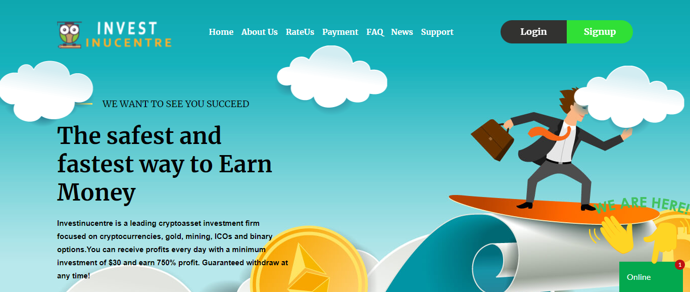 According to the Investinucentre.com website, it claims to help you Master the trade with Currency Trading Homes. They claim to be is a leading cryptoasset investment firm focused on cryptocurrencies, gold, mining, ICOs and binary options.You can receive profits every day with a minimum investment of $30 and earn 750% profit. Guaranteed withdraw at any time!