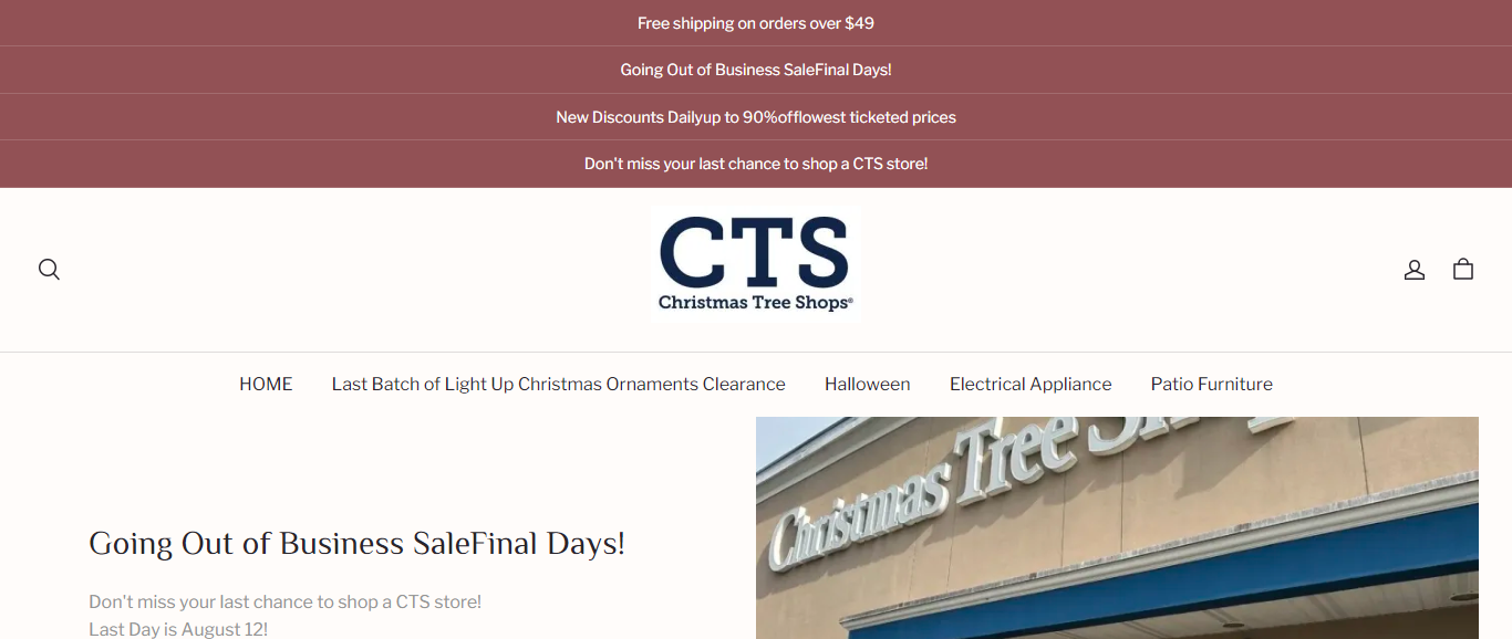 Ebiameg located at Ebiameg.shop is an online store that is impersonating the Christmas Tree Shops CTN Brand by using its brand name and logo. It claims to be selling various products such as candy cane candles, Frosty the snowman lights, dining set, etc. And these products are sold at a suspicious discount rate.