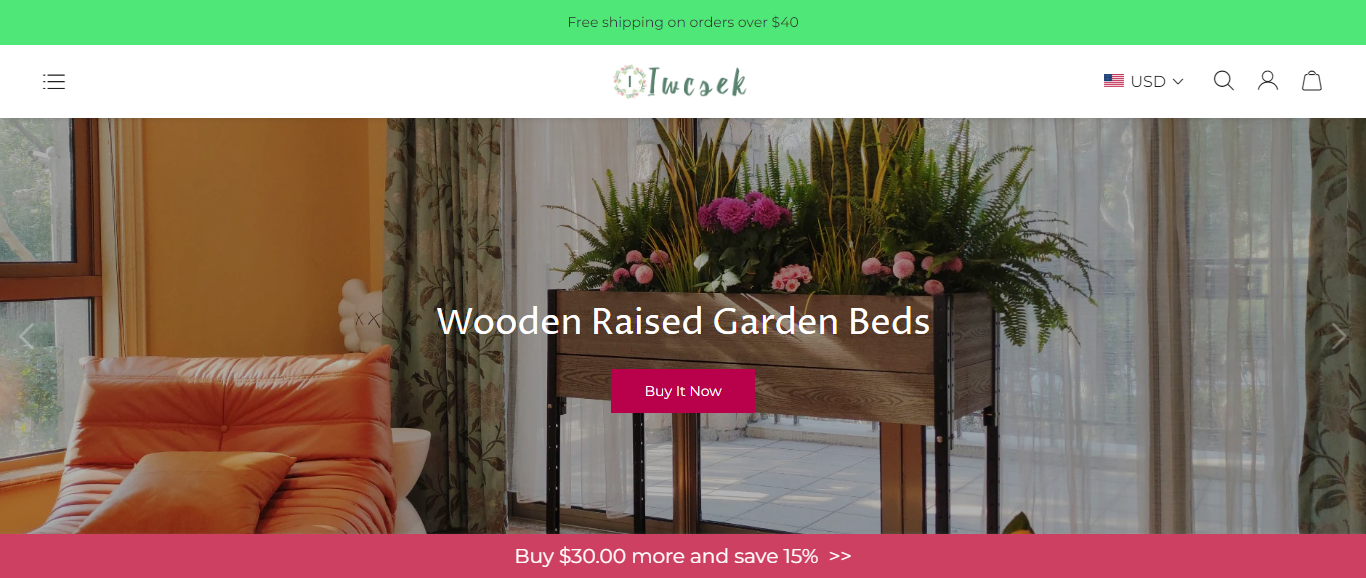 Iwcsek located at Iwcsek.com is an online store that is selling various products such as wooden garden planter box with wheel, garden raised beds, galvanized garden beds, etc, And these products are sold at a suspicious discount rate.