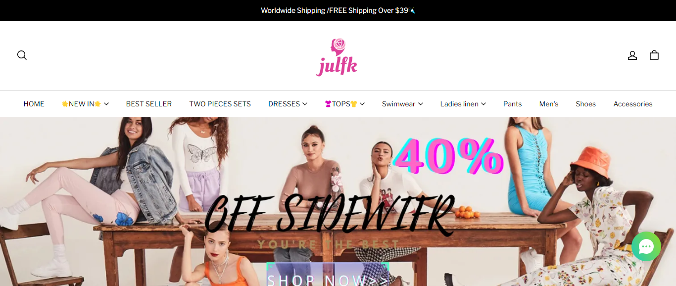 Julfk located at Julfk.com is an online store that is selling various products such as Tshirt, dress, pants, two piece sets, etc. And these products are sold at a suspicious discount rate.