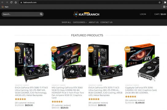 Kattsranch.com is an online store that claims to sell different kinds of graphics cards, including AMD Ryzen 9 and a bunch of other intel graphics cards. The website is not structured very well and it misses some elements of a professional online store. It is less than two months old and as such, has a low trust score (You can check this using WHOIS Domain Age Checker).
