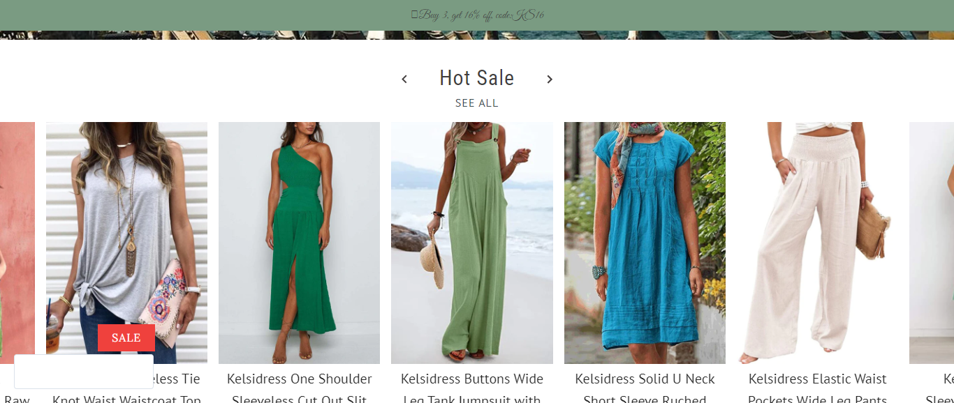 Kelsidress located at Kelsidress.com is an online store that claims to be selling female fashion and clothing such as dresses, tops, wide leg pants, etc. And these products are being sold at suspicious discount prices.