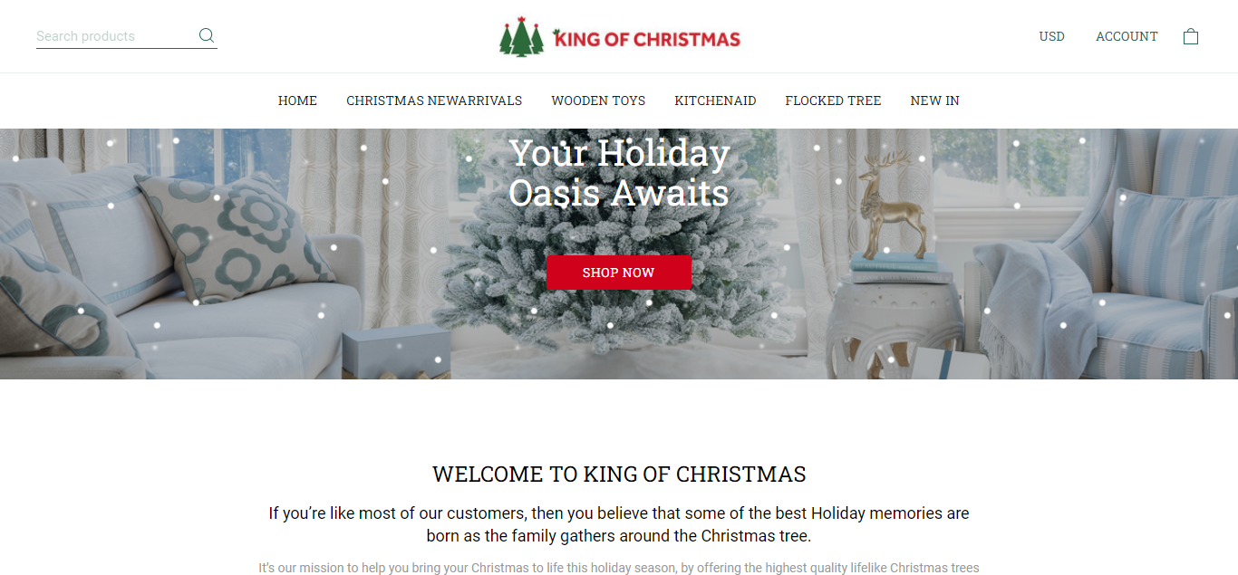 Kingofchristmas located at kingofchristmas.store is an online store that is selling various products such as Christmas trees, wooden toys, kitchenaid, flocked tree, etc. And these products are being sold at suspicious discount prices.
