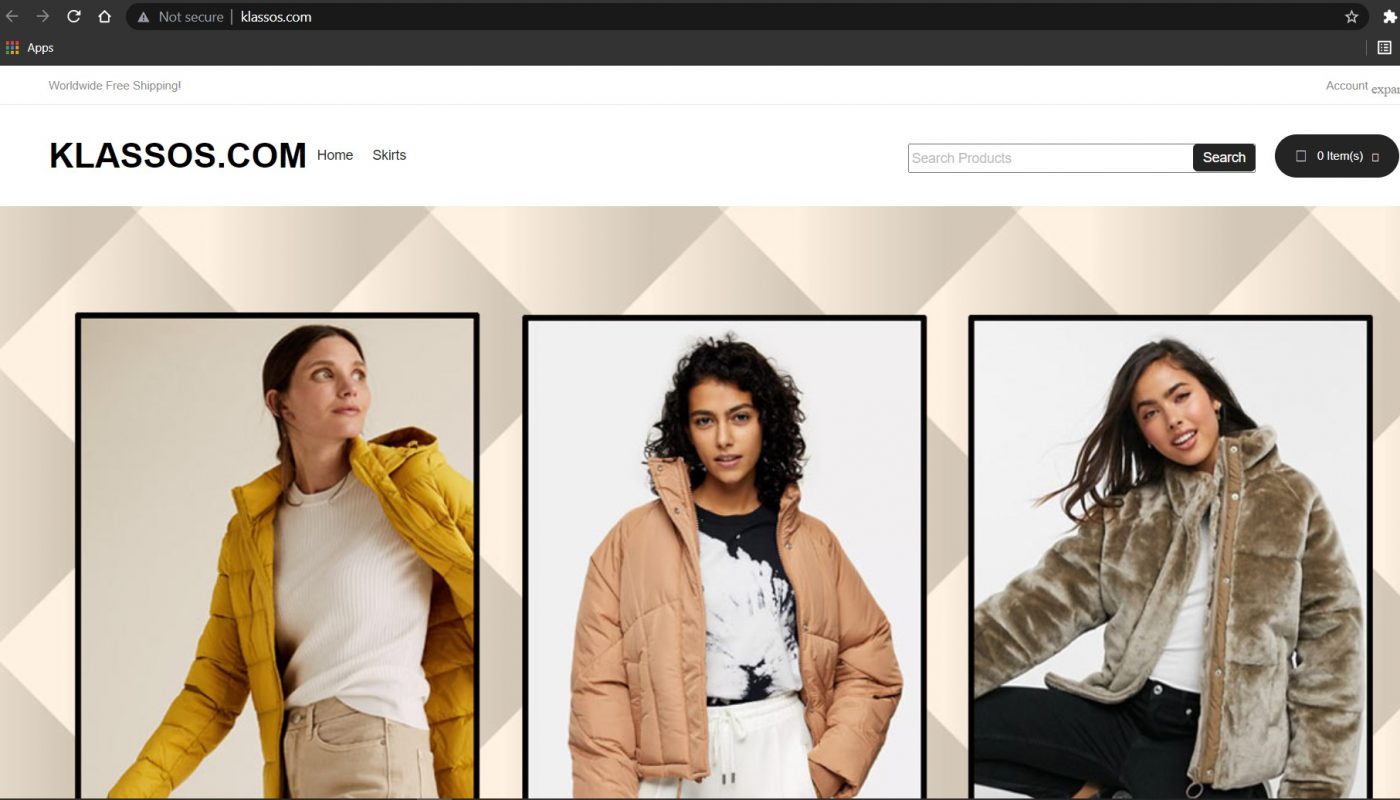 Klassos.com is an online store that claims to sell fashion items such as mini skirts. The website is not structured very well and it misses some elements of a professional online store. This site less than 6 months old (You can check this using WHOIS Domain Age Checker), and that gives it a low trust score. Buying things from fairly new websites like this rarely ends well. It also uses a http instead of https protocol, which makes it unsafe for shopping.