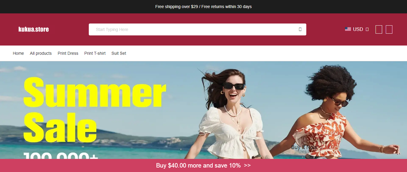 Kukua also known as Kukua Store located at Kukua.Store is an online store that is selling various products such as wide leg pant, casual two piece, art print jumpsuit, etc. And these products are sold at a suspicious discount rate.