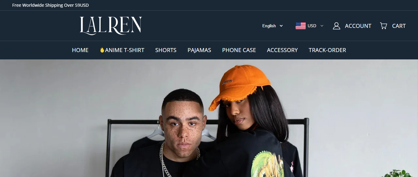 Lalren located at Lalren.com is an online store that is selling various products such as shorts, rings, wrist band, T shirts, vintage shirts, etc. And these products are sold at a suspicious discount rate.