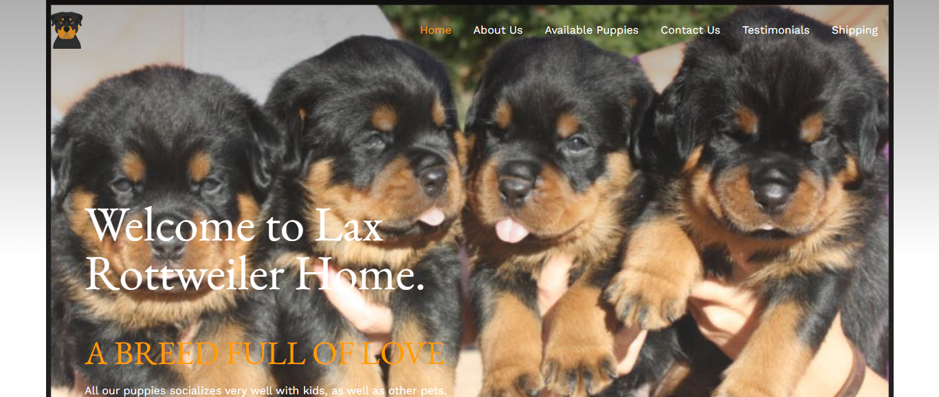 Laxrotts located at Laxrotts.com is an online store that is selling various types of Lax Rottweiler puppies, etc And these products are sold at a suspicious discount rate.