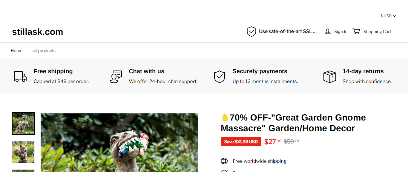 Just like various scam online stores, it uses cheap discount prices to lure customers. However when they place order they receive an entirely different item or a low grade of what was ordered while some unfortunate customers get nothing at all. This is a classic example of a bait and switch scam.