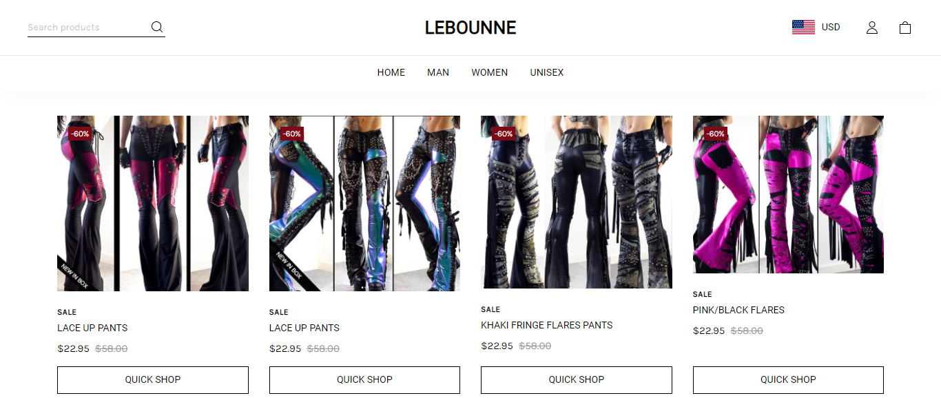 Lebounne located at Lebounne.com is an online store that is selling various fashion and clothing products like Punk trousers, punk corset, punk boots, punk leather jackets, etc. And these items are being sold at suspicious discount rates.