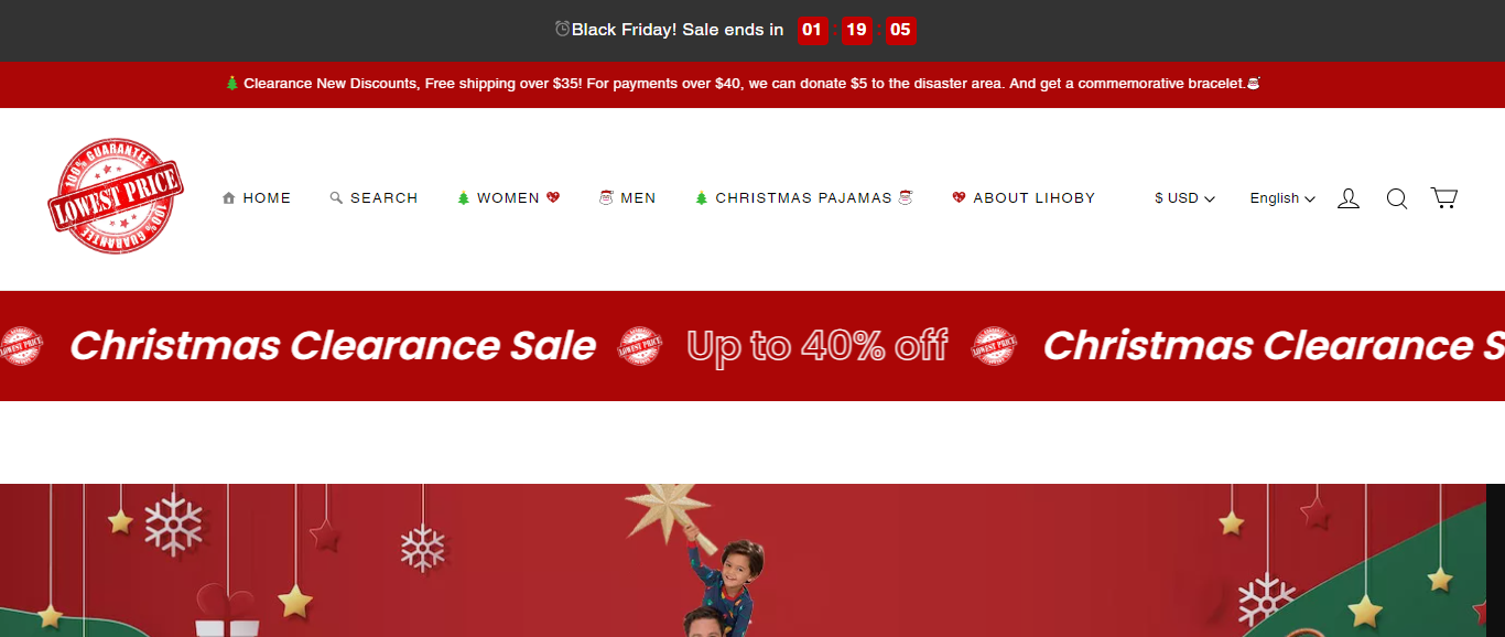 Lihoby located at Lihoby.com is an online store that is selling various types of products such as Christmas pyjamas, jackets, Tshirts, coats, etc. And these products are sold at a suspicious discount rate.