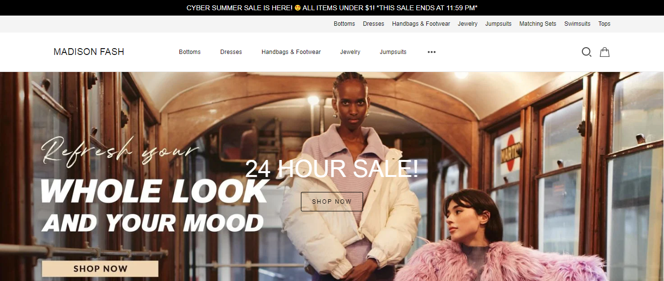 Lorisfash also known as Madison Fash located at Lorisfash.com is an online store that is selling various fashion and clothing such as dresses, jumpsuits, jewelry, etc. And these products are sold at a suspicious discount rate.