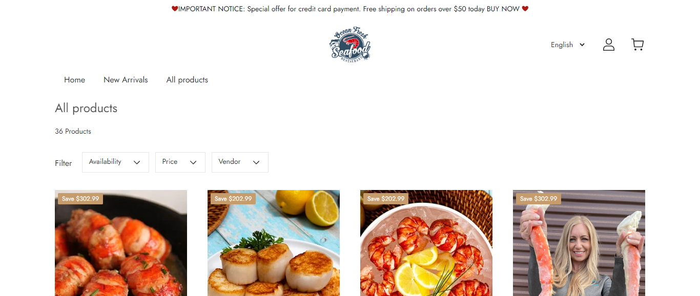 Lydont located at Lydont.shop is an online store that is selling various sea foods such as lobster tails, giant sea scallops, Red king crab legs from Bristolbay, etc. And these products are sold at a suspicious discount rate.