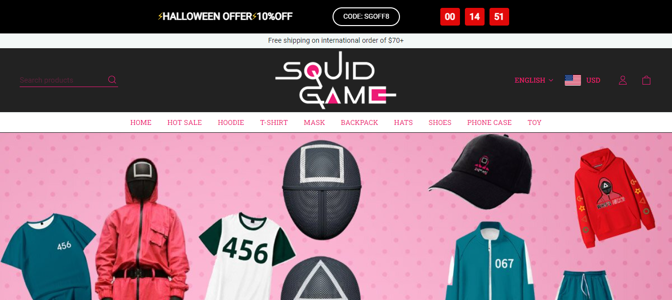Manyol located at manyol.com is an online store that deals in various types of the squid game costumes, HOODIES, T-SHIRTS, MASKS, BACKPACKS, HATS, SHOES, PHONE CASES, TOYS, as well as Squid Game related products such as Squid Game Cosplay Jumpsuit, The Front Man Costume, Circle Costume, Triangle Costume, Square Costume, Girl Suit, Player 067 Costume, Player 218 Costume, Player 199 Costume, etc. And these products are being sold at suspicious discount prices.