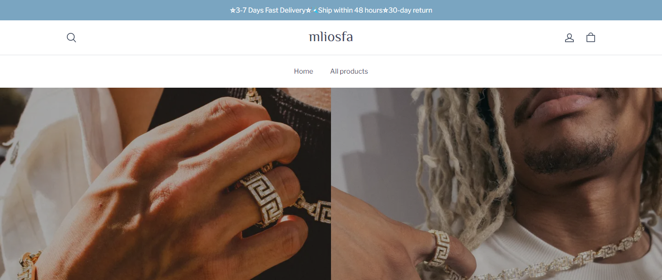 Mliosfa located at Mliosfa.shop that is selling various products such as jewelries, dresses, etc. And these products are sold at a suspicious discount rate.