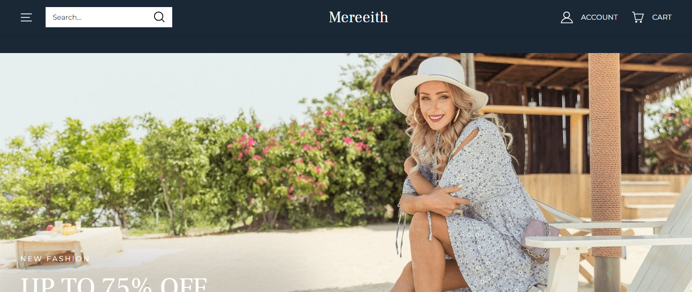Mereeith located at Mereeith.com is an online store that is selling various products such as dresses, women swim suit, women shoe, tops, jeans, loafers, etc. And these products are sold at a suspicious discount rate.
