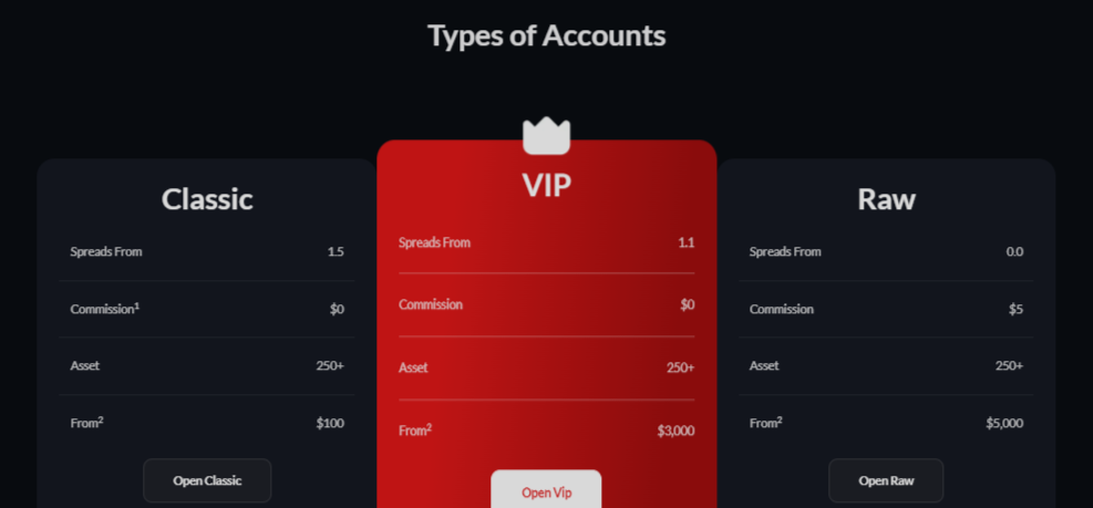 Moonance offers different account types such as Classic, VIP and Raw. According to the account descriptions, the broker offers a spread of 1.5 pip and a leverage capped 1:500.