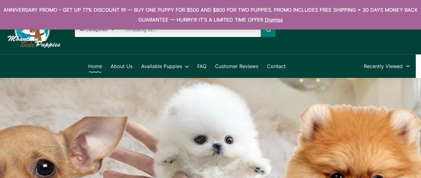 Mountainsidepuppies located at Mountainsidepuppies.com is an online store that is selling different breeds of puppies, etc. And these products are sold at a suspicious discount rate.