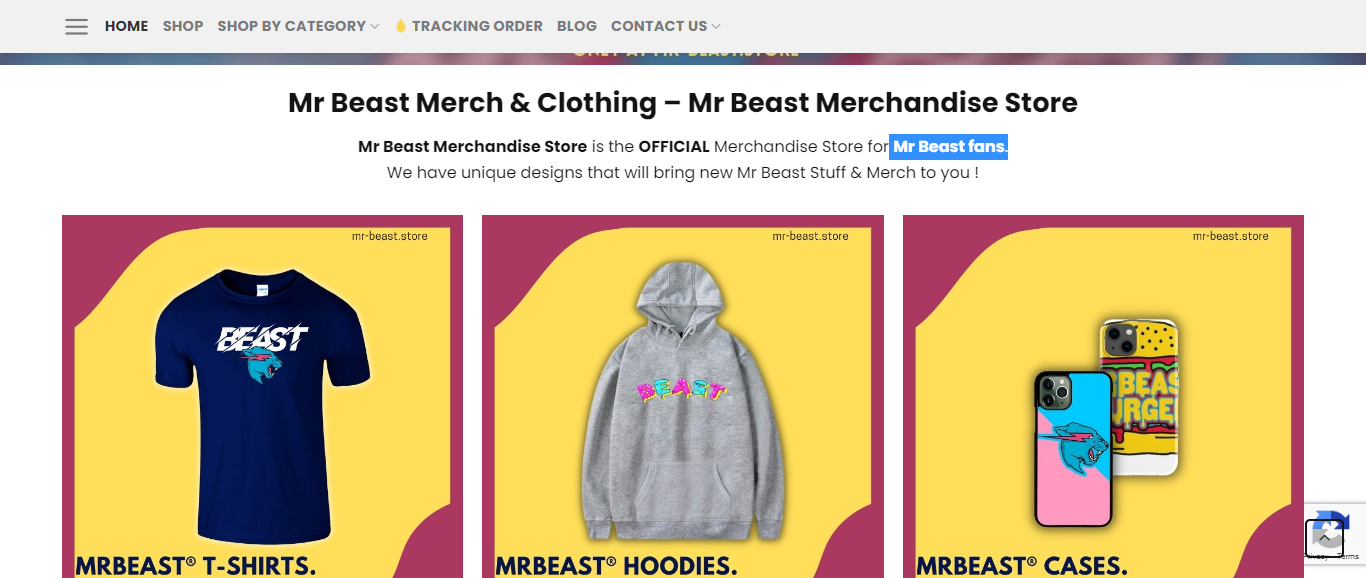 Mr-beast located at Mr-beast.store is a scam online store that claims to be selling the Mr-beast fan Merc such as Mr-beast Jerseys, Mr-beast T shirts, etc. And these products are being sold at suspicious discount prices.